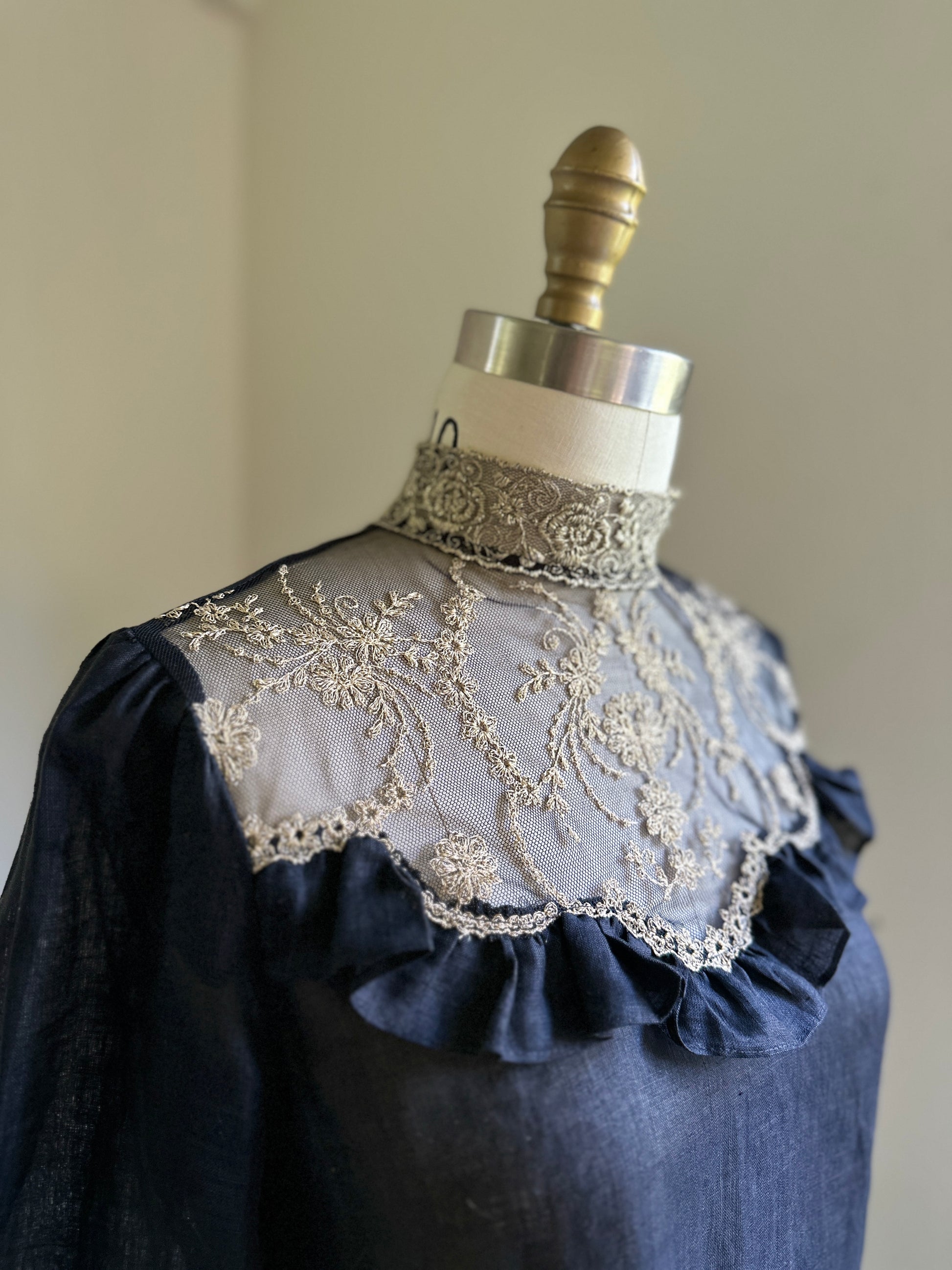 Cloak of Many Colors Black Linen and Lace Dress Shirt