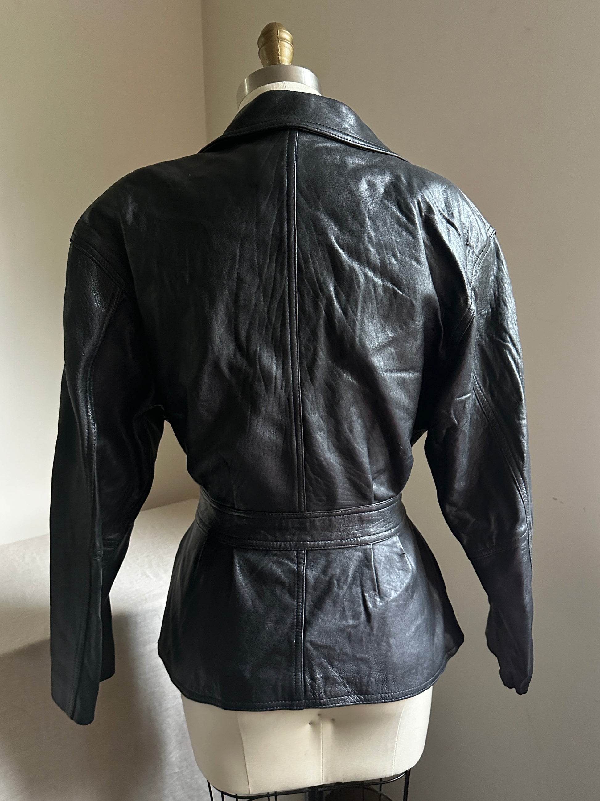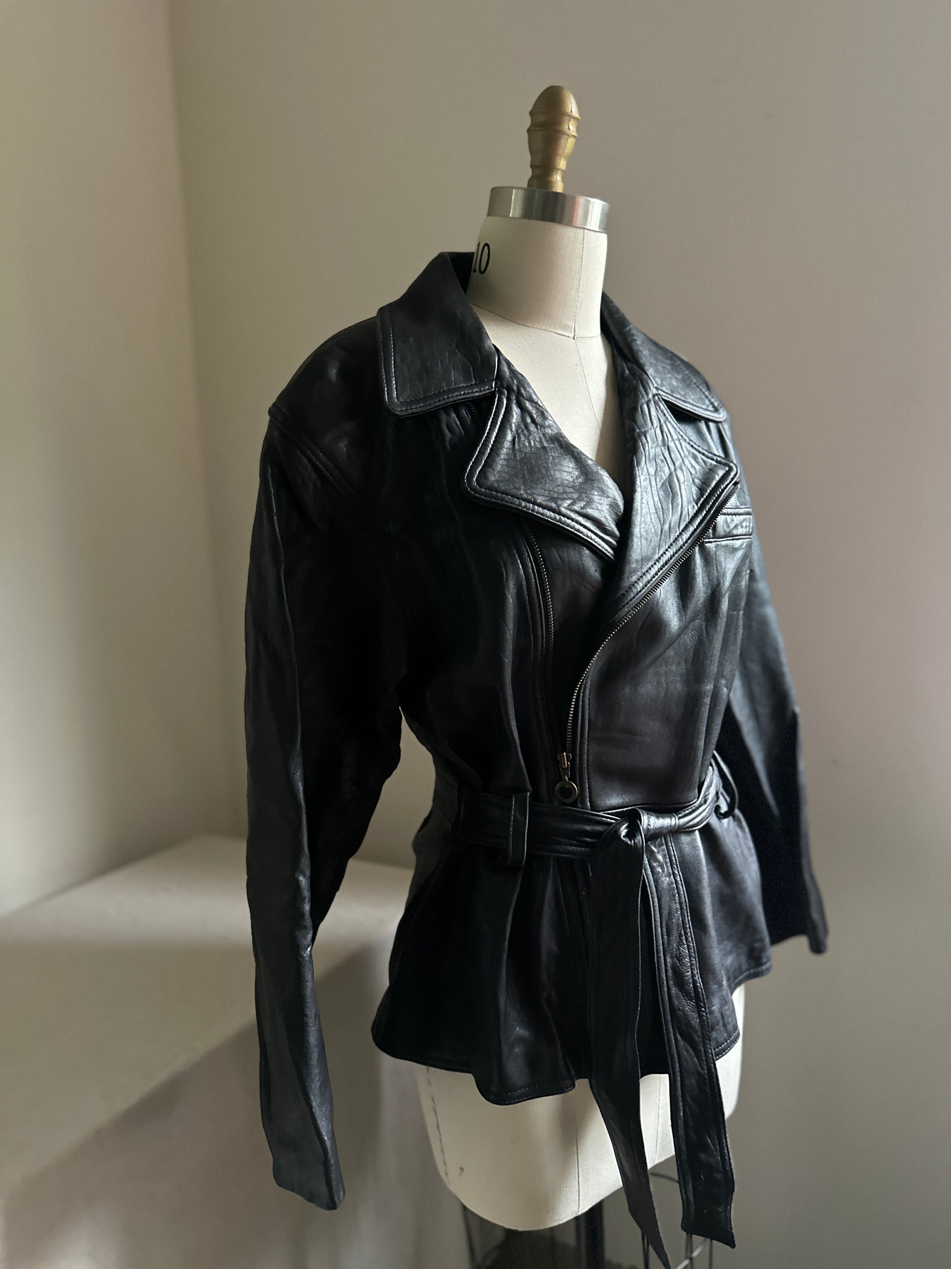 Supple leather and the zips and ties in all the right places. Zips all the way to under collar. Cozy cool.