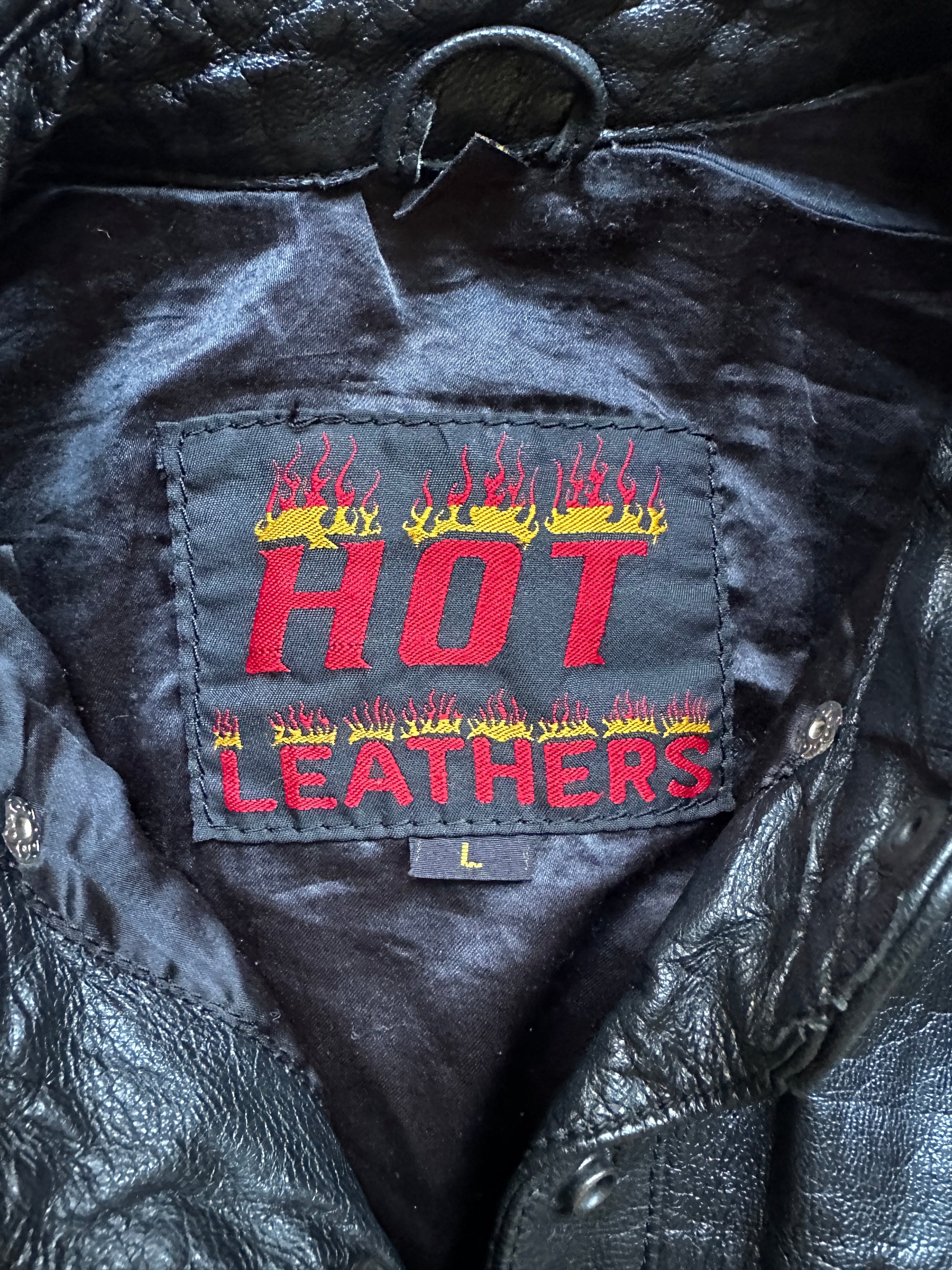 Hot Leathers Black Snap Up Leather Shirt jacket