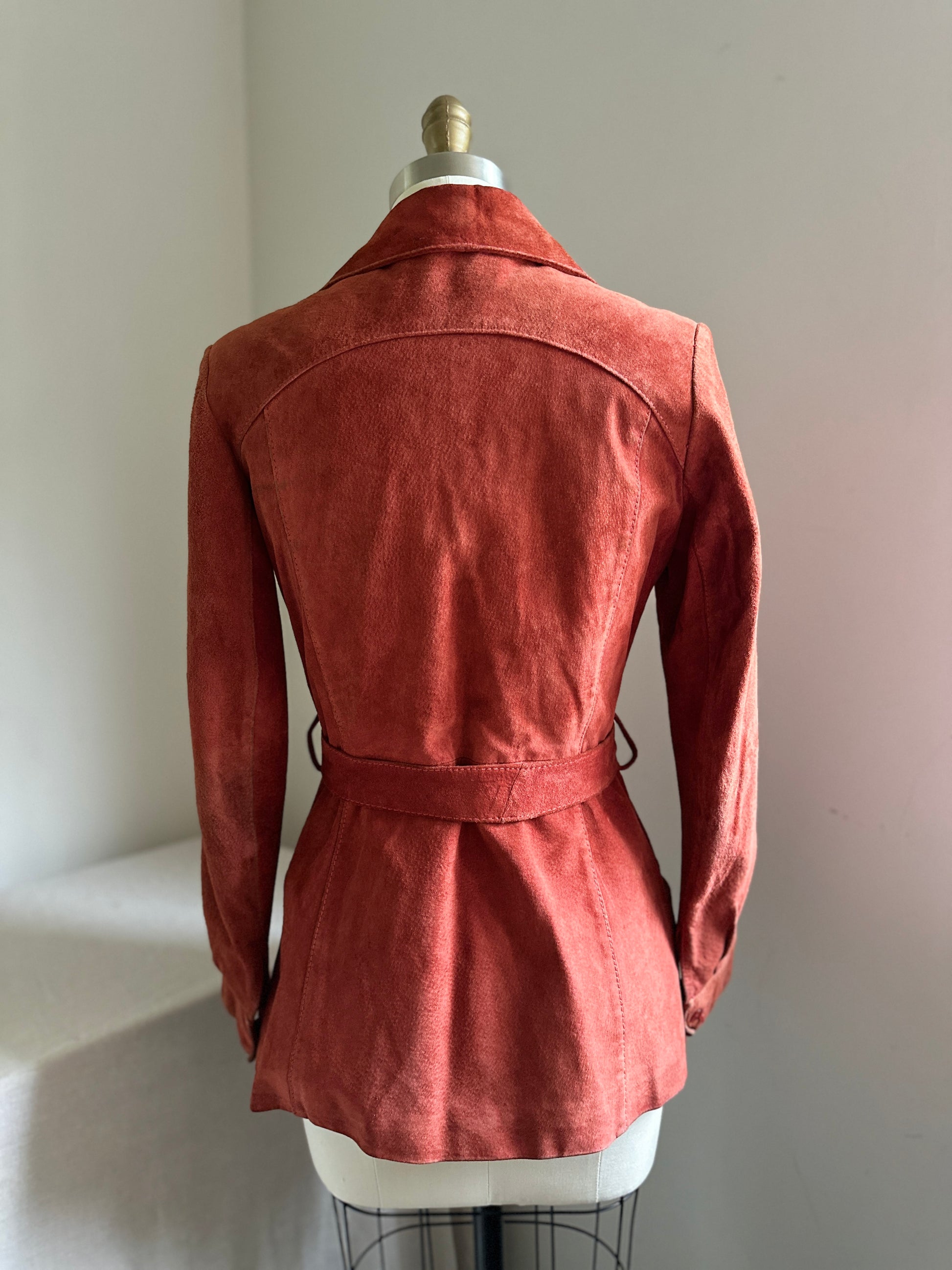 Burnt orange suede beauty with pockets in all the right places. One of a kind.