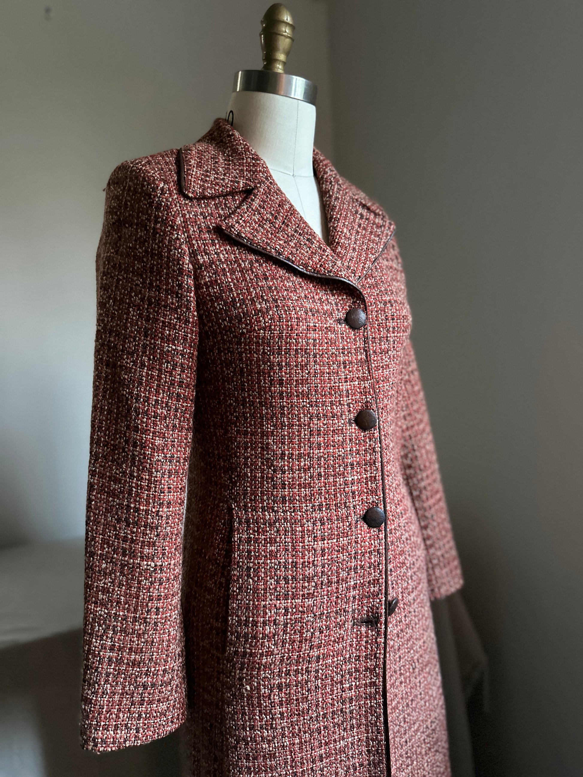 Sisley Wool and Alpaca Brown Plaid Overcoat